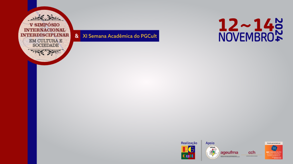 IMPORTANTE: As apresentações virtuais serão SOMENTE para os participantes que NÃO RESIDEM na Grande Ilha (São Luís, Raposa, São José de Ribamar e Paço do Lumiar). Os demais participantes, mesmo que por motivos de trabalho, deverão participar presencialmente do V SIICS e da XI Semana Acadêmica do PGCult, que ocorrerão de 12 a 14 de novembro, no CCH – UFMA, em São Luís.